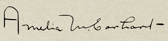 This example changes the ink color of Amelia Earhart's signature, scanned from old parchment. To replace only the ink color and leave the aged paper background untouched, we first identify the dark brown/sepia ink color rgba(121, 68, 36, 255) by clicking the stroke. We then carefully set the "Color Similarity Threshold" to 35%. This range is crucial as it includes the various brown/darkened ink pixels but successfully excludes the lighter gray pixels from the parchment's texture. (Source: Wikipedia.)
