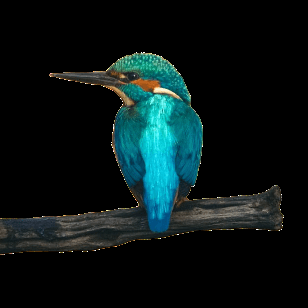 In this example, we inspect a PNG image in an extreme hardening mode by setting the alpha threshold to zero. This makes even fully transparent pixels opaque black and clearly shows that the transition area between the transparent background and the bird's feathers contains many colored semi-transparent pixels. Such a diagnostic is useful for spotting hidden edge pixels that may become visible after export or format conversion. (Source: Pexels.)