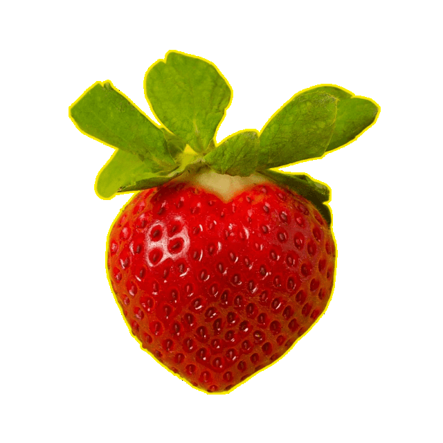 In this example, we harden the edges of the PNG to reveal hidden semi-transparent pixels that form a yellow outline around the strawberry. This faint halo can cause problems on certain backgrounds or in formats without semi-transparency support. This conversion clearly shows that the PNG needs further cleanup before it can be safely used. (Source: Pexels.)