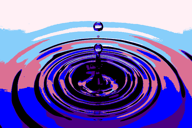 In this example, we restrict a smooth water‑drop gradient PNG to just six chosen colors. The palette includes lightskyblue, palevioletred, indigo, blue, black, and lavenderblush. By quantizing the PNG to these shades, the continuous gradients disappear, leaving a layered, cartoon‑like composition. (Source: Pexels.)