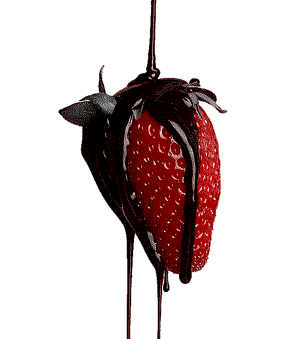 In this example, we apply dithering to a PNG image of a strawberry with chocolate, with a transparent background. The program preserves all transparent areas of the PNG in the output image, while applying the dithering effect only to the visible pixels. With a 3-color palette, the Jarvis algorithm creates a detailed strawberry using just three tones: black for chocolate and shadows, red for the strawberry surface, and white for highlights. Thanks to the fine pixel granulation and checkerboard blending, the strawberry looks surprisingly realistic even with such a limited palette. (Source: Pexels.)