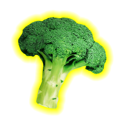 In this example, we apply a glowing effect to fresh green broccoli PNG. We choose a vibrant yellow color for the glow, spreading it in a 30-pixel radius with a linear gradient. Pixels closest to the broccoli have maximum opacity (255), while pixels 30-pixels away become transparent. (Source: Pexels.)
