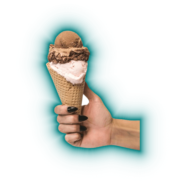 In this example, we create a light, wide glow around an ice cream cone in someone's hand. We use the exponential glow type, which quickly fades to transparency, and set the width to 100 pixels. We use the color teal for the glow and apply it only to the outer sides of the PNG object. (Source: Pexels.)