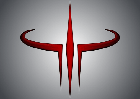 In this example, we add a background to a transparent Quake 3 Arena logo, which is also the Quad Damage power-up. To emphasize the shape of the logo, we use a radial gradient with a 550px radius that's positioned in the center of the PNG. We create the background from three colors – white, #43464B, and #222426 – that mixed together from the center to the edges create a metallic silver color tone. (Source: id Software.)