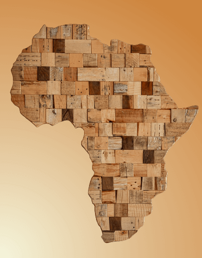 This example fills the void around an abstract wooden map of Africa. The transparent pixels around the continent are filled with an opaque gradient background that consists of three colors, changing in the radial direction. The gradient starts with a "beige" color at the bottom left corner, follows by a "burlywood" color in the center, and then follows by a "peru" color in the upper right corner. These colors together make it a desert color tone background. (Source: Pexels.)