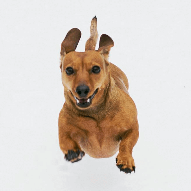 In this example, we add a circular border around the PNG image of a leaping dog. We round the corners of the border to a radius of 330 pixels, which is sufficient to create a perfect circle around the square image. We use a burlywood color and set the border width to 25 pixels. (Source: Pexels.)