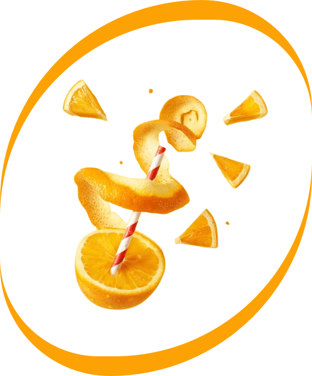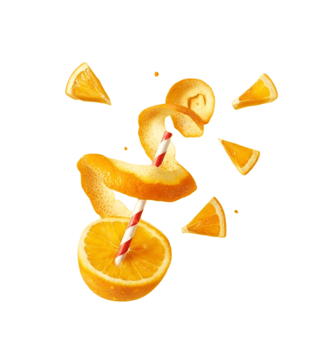 In this example, we add a decorative border with an unusual shape to a vibrant PNG image of a citrus composition. We apply the border only to the top and bottom sides and activate corner rounding. We round the top left and bottom right corners to 400 pixels, and the top right and bottom left corners to 200 pixels. We fill the border with an orange color, resulting in a unique and dynamic border around the PNG. (Source: Pexels.)