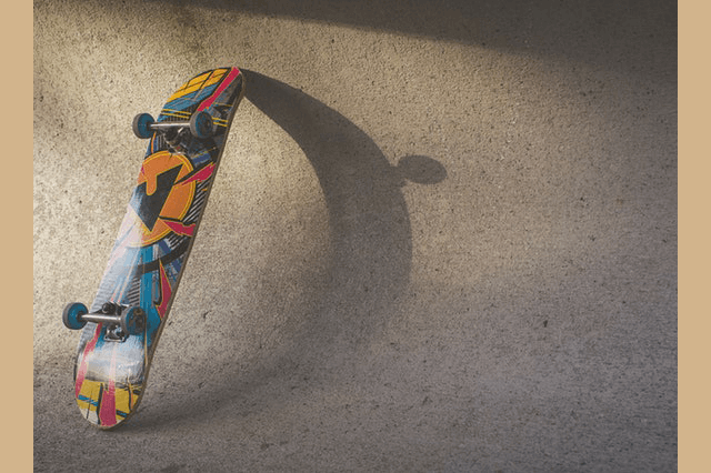This example adds a completely opaque inner border to the left and right sides of a PNG skateboard photo. The border is drawn over the existing photo content on the edges and this operation doesn't resize the original PNG. The thickness of the left and right borders is 30 pixels and the color of the border is "tan". (Source: Pexels.)