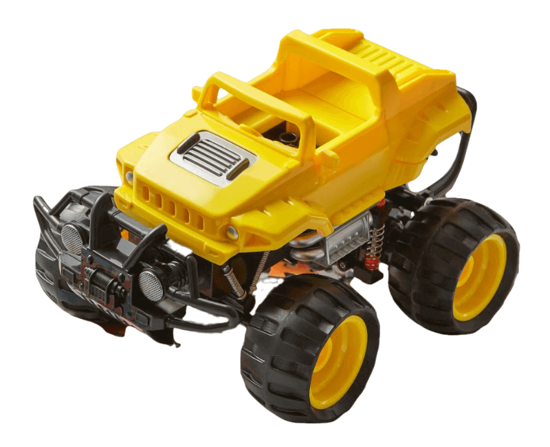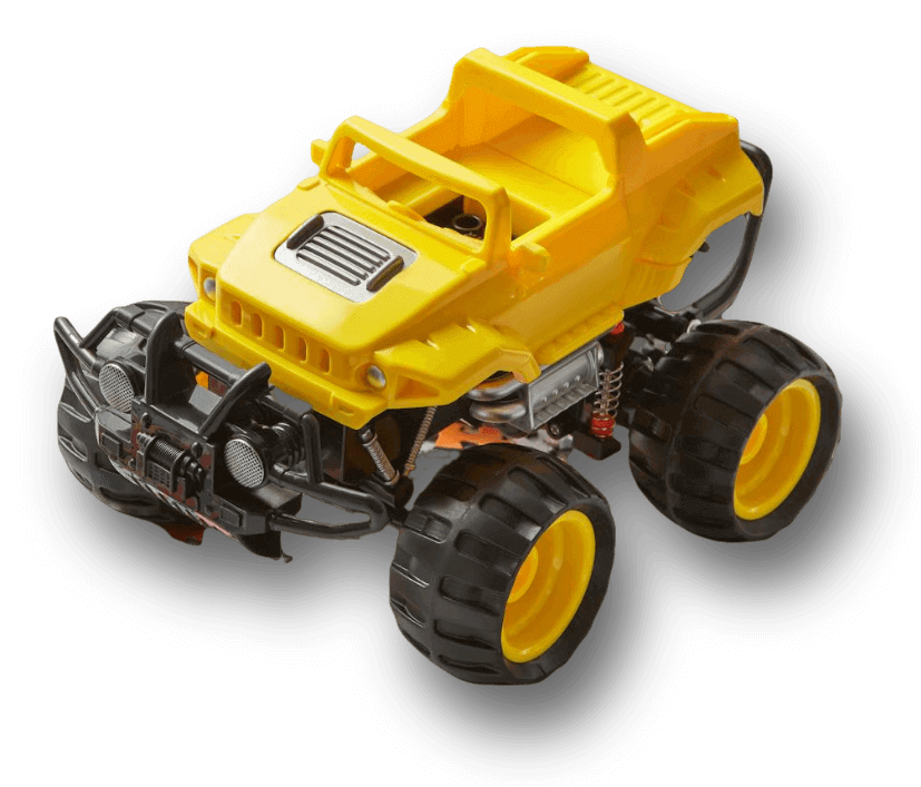 In this example, we add a realistic shadow to a yellow toy truck PNG image. The shadow is offset 20 pixels horizontally and 40 pixels vertically, which is characteristic of shadows cast by objects under top lighting. The shadow has a semi-transparent black color (with 60% opacity) and spreads with a blur radius of 50 pixels. (Source: Pexels.)