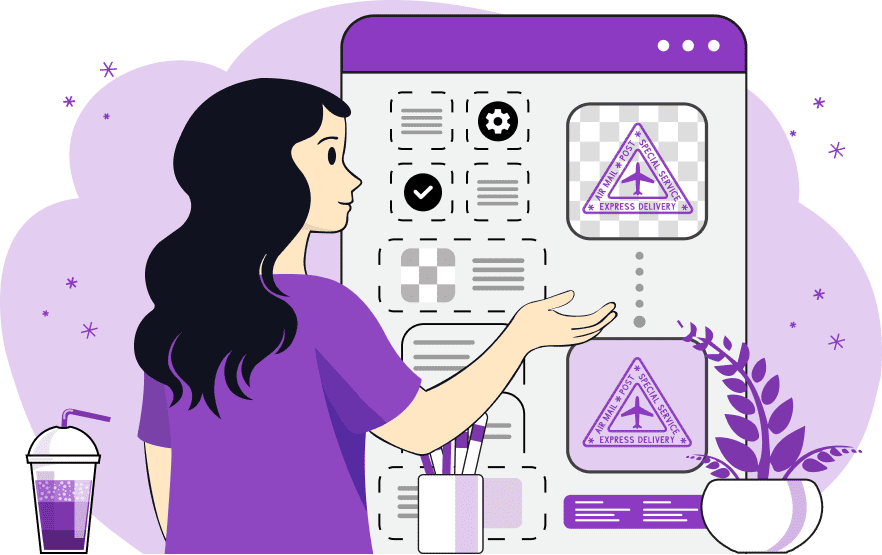 In this example, we convert a transparent "Coming Soon" stamp into a semi-transparent one by adding a lavender-colored background with 30% transparency. Coming soon stamps are often used in ads to promote upcoming events, so maintaining its eye-catching design is important. The 30% see-through lavender background complements the stamp's color scheme and helps it remain visible on any printed material. (Source: Freepik.)