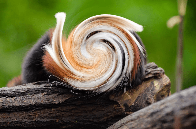 In this example, we upload a photo of an animal hiding behind a vortex of pixels. To see which animal is in the photo, we apply the whirl effect in the opposite direction. We set a negative rotation angle, which returns the pixels to their original positions, and as a result, we get a cute photo of the red panda. (Source: Pexels.)