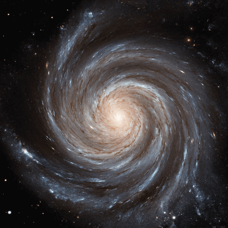 In this example, we used our utility to predict what a spiral galaxy called The Pinwheel Galaxy (also known as Messier 101) will look like 10 million years later. As spiral galaxies keep rotating around their centers, they get curled up more and more, and to perform this simulation, we placed the point of rotation in the very center of the galaxy and created a swirl of 45 degrees. (Source: NASA.)