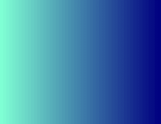 In this example, we apply RGB blending between aquamarine and navy. We generate 50 midpoints, resulting in an almost perfectly smooth gradient between the two colors. Each shade is displayed as a 10×400 pixel swatch, arranged side by side to create a horizontal transition from the aquamarine on the left to the navy on the right.