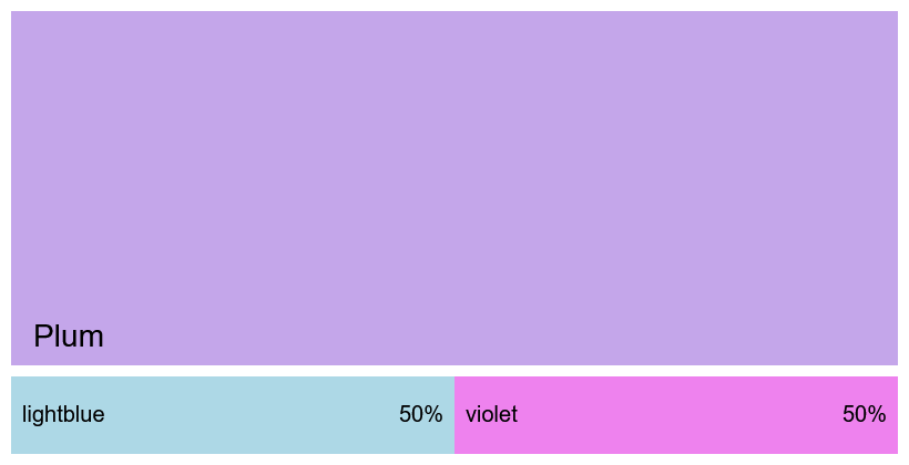 In this example, we find the perceptual average between two colors: light blue and violet. By selecting the perceptual method, the tool simulates how these two colors blend on paper. In the output, we choose to print the average color's closest English name, which is the "plum" color.