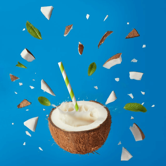 In this example, we change the blue background color to pink in a coconut cocktail party PNG composition. We select the background color by clicking on the preview area and additionally match 15% of similar shades of the blue color. We also smooth the edges of the new background to completely remove any blue pixels around the fruit pieces and make them all pink. (Source: Pexels.)