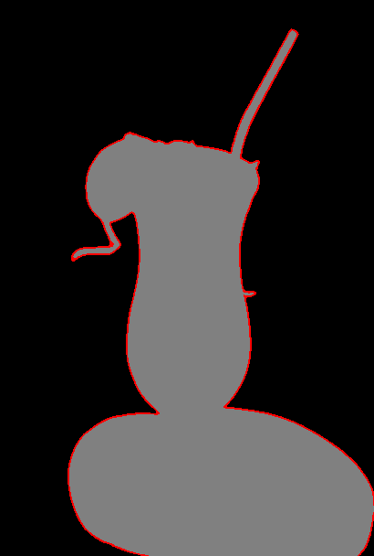 In this example, we identify opaque, transparent, and semi-transparent areas in the given PNG and redraw them as a pixel mask using three different colors. As we have activated the "Display Actual Translucency" mode for semi-transparent pixels, their actual alpha channel information is preserved. The pixel mask in the output instantly shows that the opacity gradually decreases from the top to bottom, the peaks of the snow-capped mountains are entirely transparent, but the mountains are opaque (drawn in write color). (Source: Pexels.)