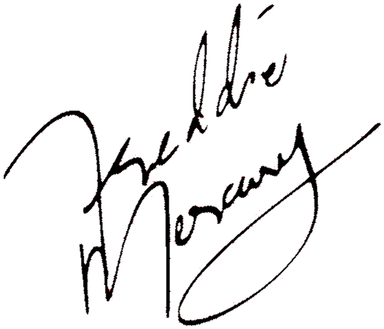 In this example, we clean up the edges of Freddie Mercury's digital signature. The signature originally had a red background but it was poorly removed and a lot of tiny red pixels from the original background formed around it. To make the signature neat and usable in digital documents, we apply the edge refinement algorithm with pixel removal in a radius of 1 pixel, and pixel smoothing in a radius of 1 pixel. Now all red pixels are gone. (Source: Wikipedia.)
