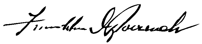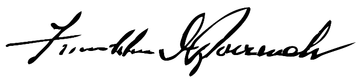 In this example, we digitize Franklin Roosevelt's handwritten signature by converting its scanned version into a transparent PNG file. Since the signature's ink is black, we specify the black color in the tool options and include a 15% range of shades close to black to make sure gray tones around the edges of the signature get converted as well. The digital signature is placed on a transparent background, instantly making it usable on any background. (Source: Wikipedia.)