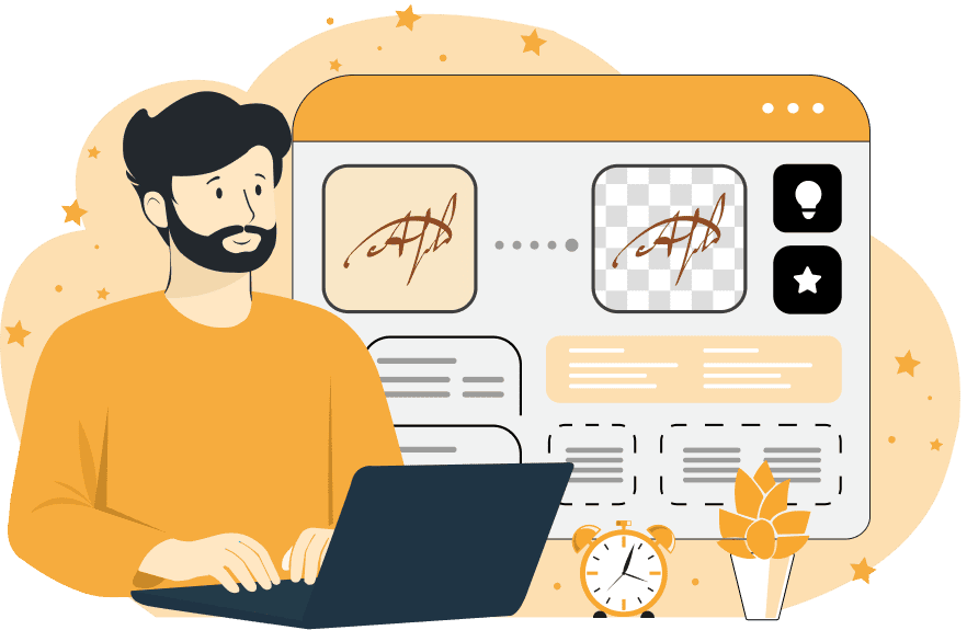 World's simplest online handwritten to digital signature converter. Just import a photo or scan of a handwritten signature in the editor on the left, and you'll instantly get a digital signature on the right. In the tool options (below), you can also change its thickness, color, and background color. Free, quick, and very powerful. Created with love by team Browserling.