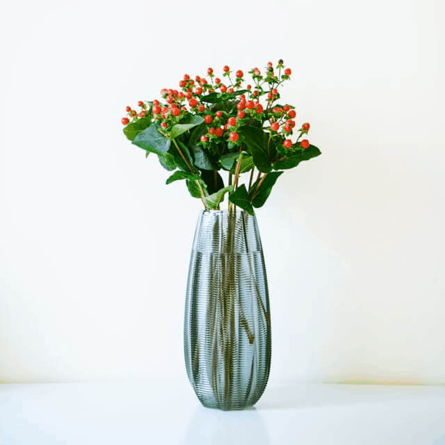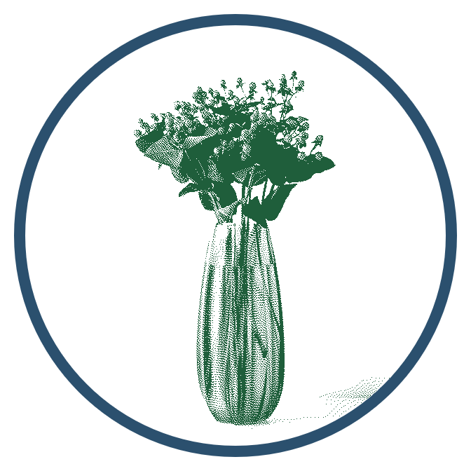 In this example, we create a decorative stamp from a JPG photo of a flower vase. We switch to the circular cropping mode and select a round 600×600 pixel area of the JPG. To preserve the maximum artistic detail and texture, we enable the dithering option using the Atkinson's method. Around the border, we add an extra 20 pixels of padding, giving the edges some space. Additionally, we style the stamp with two colors – dark green for the vase and flowers and dark blue for the circular border. (Source: Pexels.)