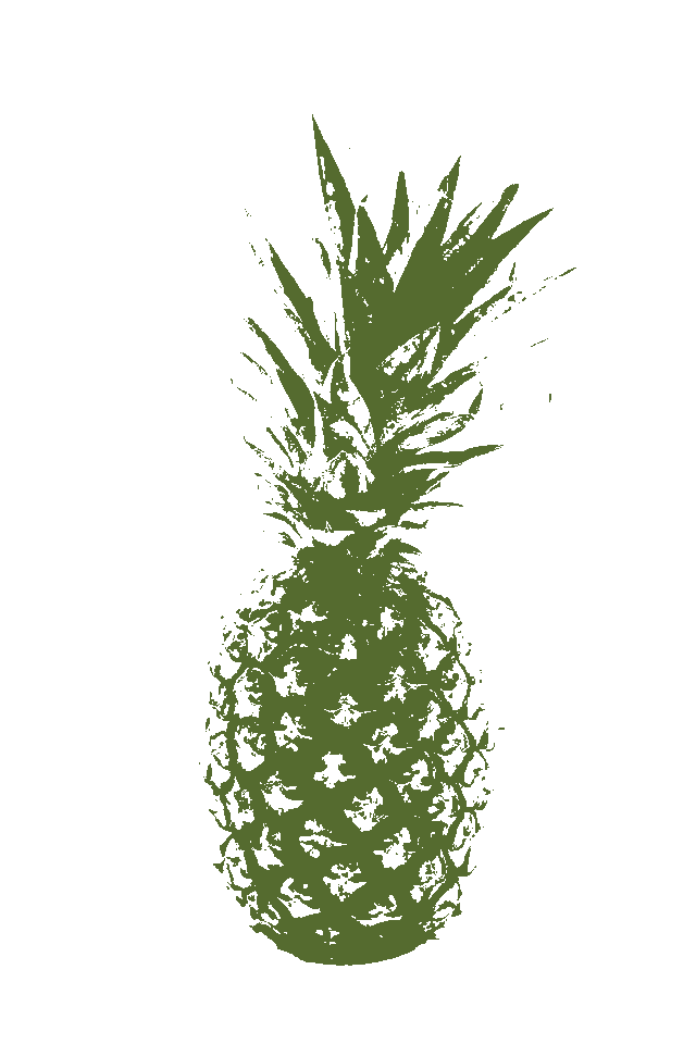 In this example, we convert a PNG photo of a pineapple into a single-color stencil-like stamp. We select the "Rectangular Crop" mode and place the crop area over the entire photo, creating a stamp of the same size as the input. To preserve maximum detail, we increase the light match precision to 145%, which emphasizes lighter pixels and discards shadows. For the stamp's color, we select the pineapple crown's color (dark-olive-green). The result is a clean and detailed pineapple imprint without a border. (Source: Pexels.)