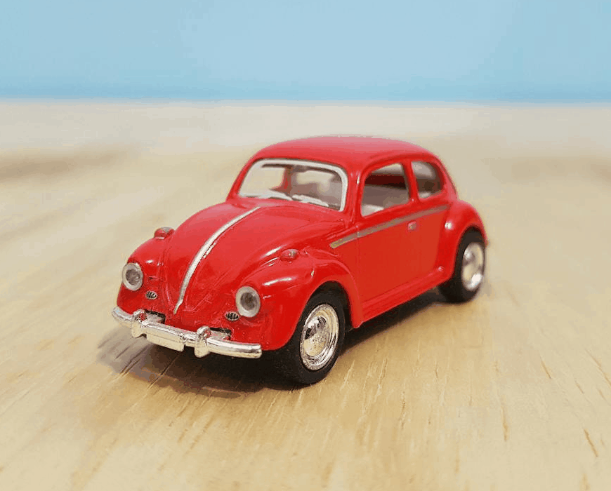 This example turns a single-frame, static GIF image of a red Volkswagen Beetle into a stamp resembling a postage mark. It tightly crops the image around the car, sets a rectangular shape, and adds a bold black spiky border around it. The stamp is colored black and its quality is reduced to 70%, giving it a slightly worn, imperfectly inked appearance. (Source: Pexels.)