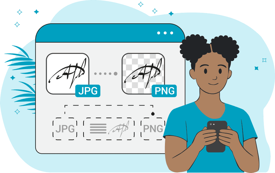 World's simplest online JPG signature to PNG signature converter. Just import a photo or a scan of your signature in the JPG format in the editor on the left, select the background color, and you'll instantly get a signature in the PNG format without the background on the right. Free, quick, and very powerful. Created with love by team Browserling.