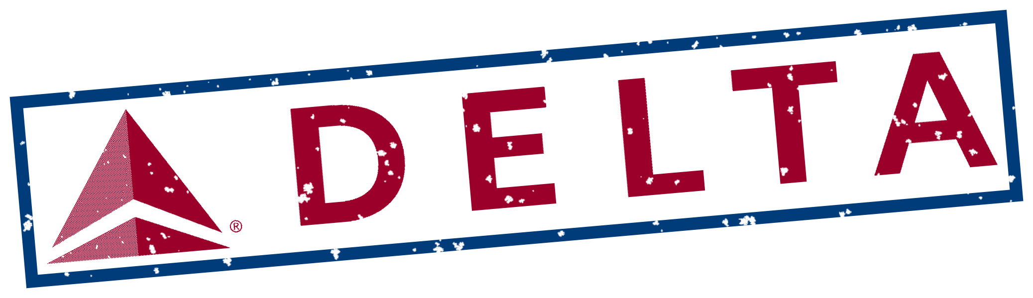 In this example, we convert the Delta Air Lines brand logo into a slightly rotated rectangular stamp in PNG format. To reflect color variations in the original red-and-blue logo, we enable dithering using the Atkinson's method, which simulates multiple colors through dot-style shading. We also lower the color contrast to 50%, fill the stamp's imprint with Delta's red color, and add a rectangular border around the whole stamp in Delta's blue color. (Source: Wikipedia.)