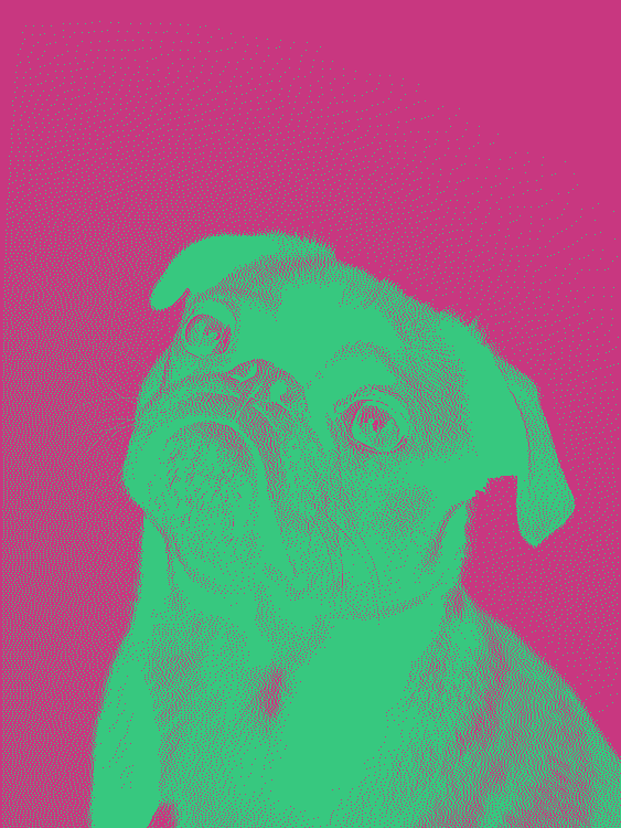 In this example, we demonstrate how you can change the black and white colors to other colors. We enter "#C83780" in the "white-color" field and "#37C87F" in the "black-color" field. This way unsaturated violet color (#C83780) is now the new white color and unsaturated sea green (#37C87F) is the new black color. Additionally, a dither effect is enabled via the Two Sierra method. (Source: Pexels.)