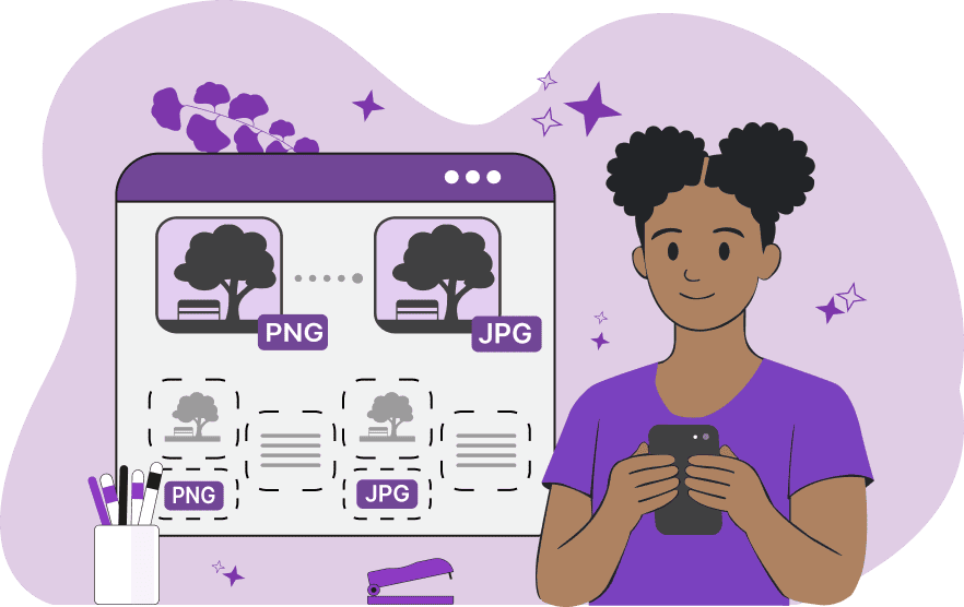 World's simplest online Portable Network Graphics (PNG) image to Joint Photographic Experts Group (JPEG) image converter. Just import your PNG image in the editor on the left and you'll instantly get a JPEG on the right. Free, quick, and very powerful. Import a PNG - get a JPEG. Created with love by team Browserling.