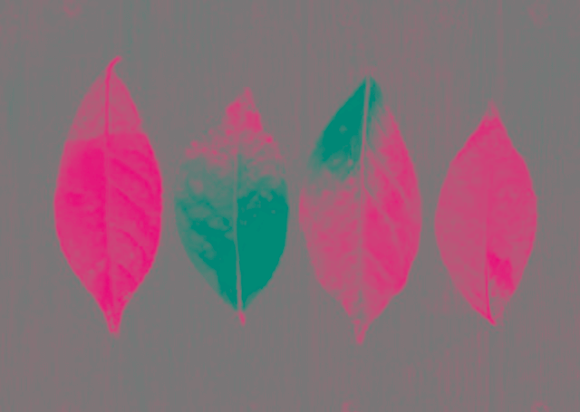 In this example, we extract only the A channel from a PNG photo of four autumn leaves. As you can see, the leaves contain different hues – red, orange, yellow, and light green. Since the A channel maps the green-red axis of LAB color space, we can clearly observe how certain leaf regions lean toward red (pink tones) and others toward green (cyan tones). This separation reveals hidden color relationships that are not as obvious in the original PNG. (Source: Pexels.)