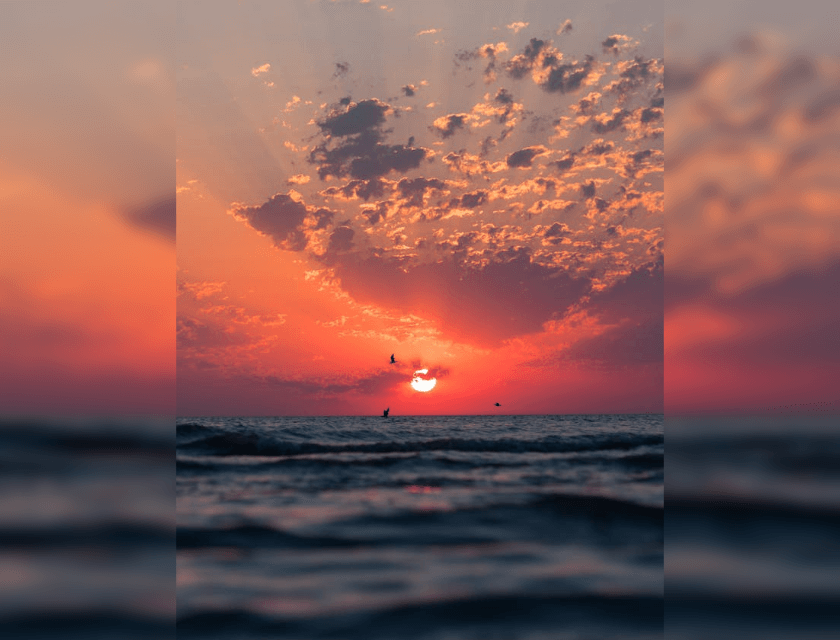 In this example, we convert a portrait PNG of a sunset over the sea to a landscape one. We do this in auto mode, so the PNG automatically changes dimensions from 640×840px to 840×640px. We use the blurred background of the original PNG to expand the image on the sides, and we get a horizontal PNG with blurred side inserts. (Source: Pexels.)