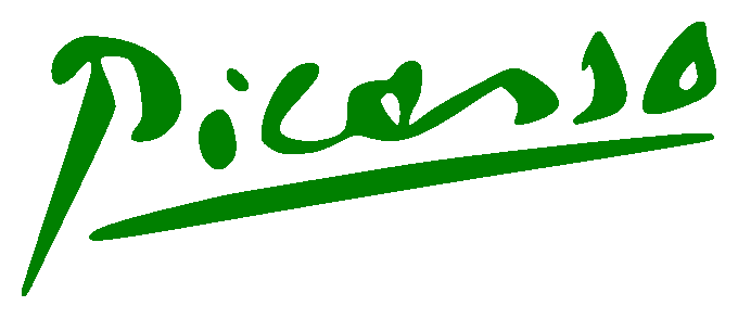 In this example, we draw Pablo Picasso's digital signature in black-and-white tones. We determine the color of the original signature's ink by clicking on it in the input area. In addition to the green color, we convert an additional 20% of pixels of similar tones to black-and-white. As a result, we get a black signature on a white background. (Source: Wikipedia.)