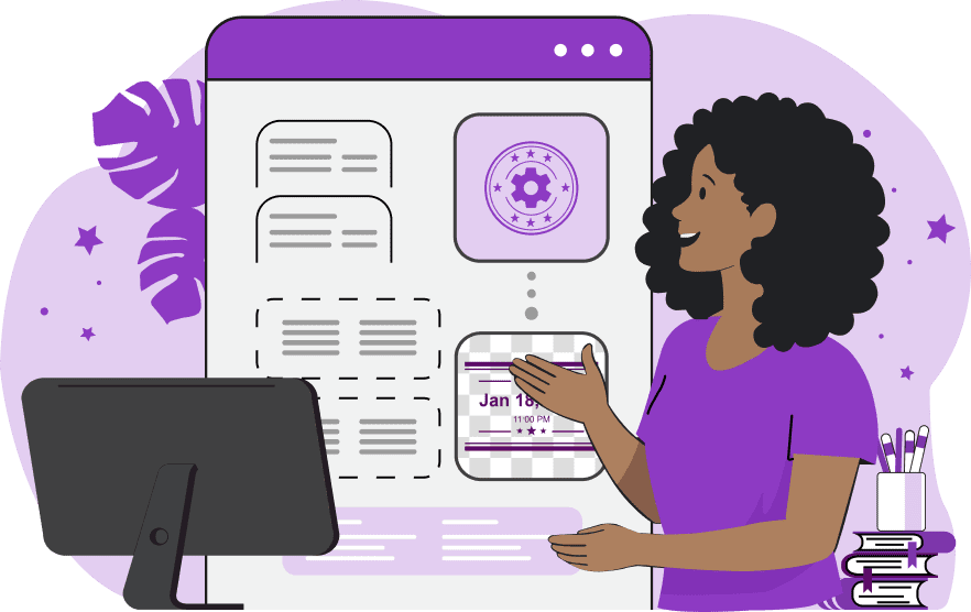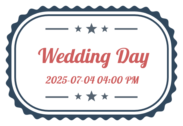 In this example, we're designing an elegant wedding invitation stamp that can be used to send out guest invitations. To do it, we select a rounded rectangular stamp shape with a wavy border and decorate the design with extra stars and lines. We pick a beautiful color combination for the stamp elements and also change the main text's font to a custom italic font by loading it via a Google Font called Lobster Two.
