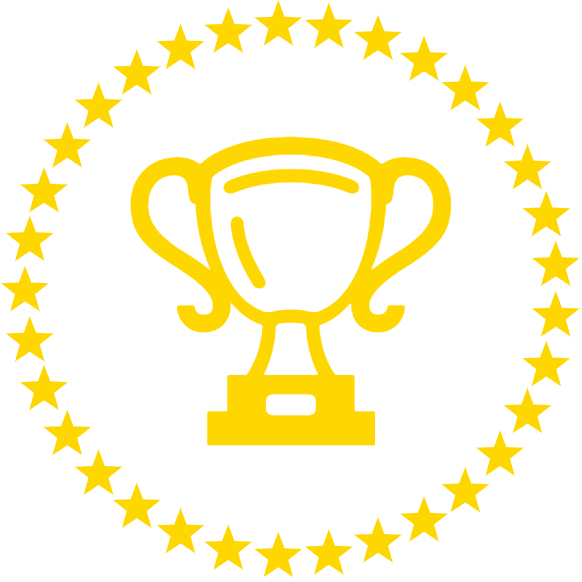 In this example, we transform the ð trophy emoji into a digital PNG stamp for winners. In the tool options, we set its size to 300px, make it bold, and paint it in gold color to make it stand out. Around it, there's a cool border made out of big connected stars (50px in size), giving it an official look. This kind of stamp can be used on social media and blog posts to celebrate achievements and milestones.