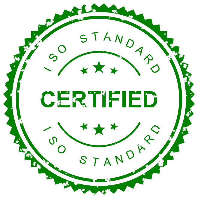 In this example, we design a professional certification stamp in PNG format that indicates compliance with ISO standards. This type of stamp is commonly used for marking documents and products to confirm that a service or product meets international requirements. The stamp uses the standard green color, and its shape is round with pointy edges. The word "CERTIFIED" is written in bold Arial font. Around it, there are extra stars and curved lines to make it look more official. We also added an ink-wear effect by setting this effect's option value to 70%. This option makes it look like it's been used for a long time.