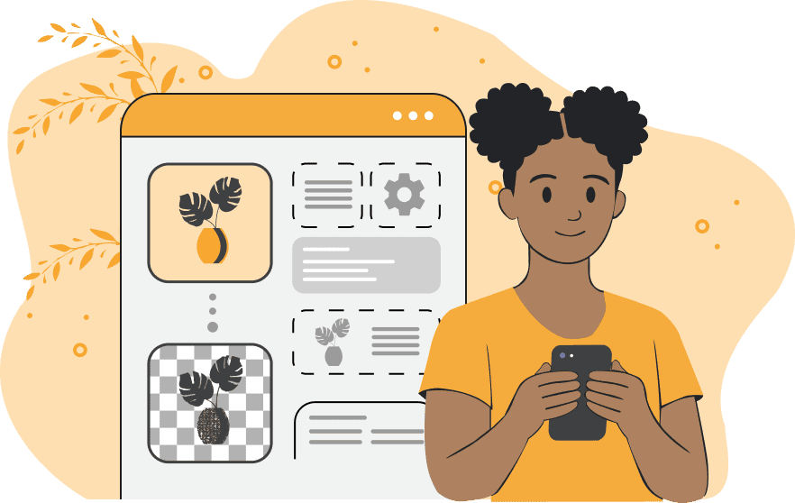 This example creates a monochrome 1-bit color poster from a PNG photo of a woman in a yellow shirt. We set the pixel color to dark goldenrod and convert the background to white (hex color code #FFFFFF). Dithering is not used in this example. (Source: Pexels.)