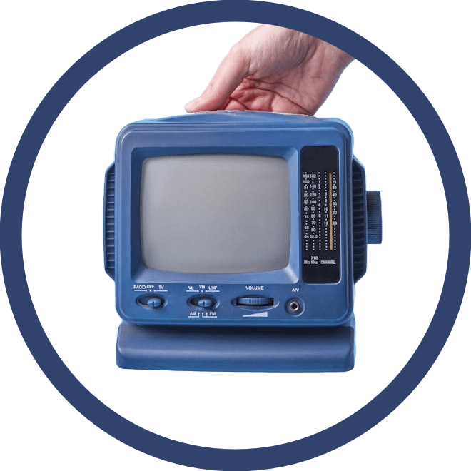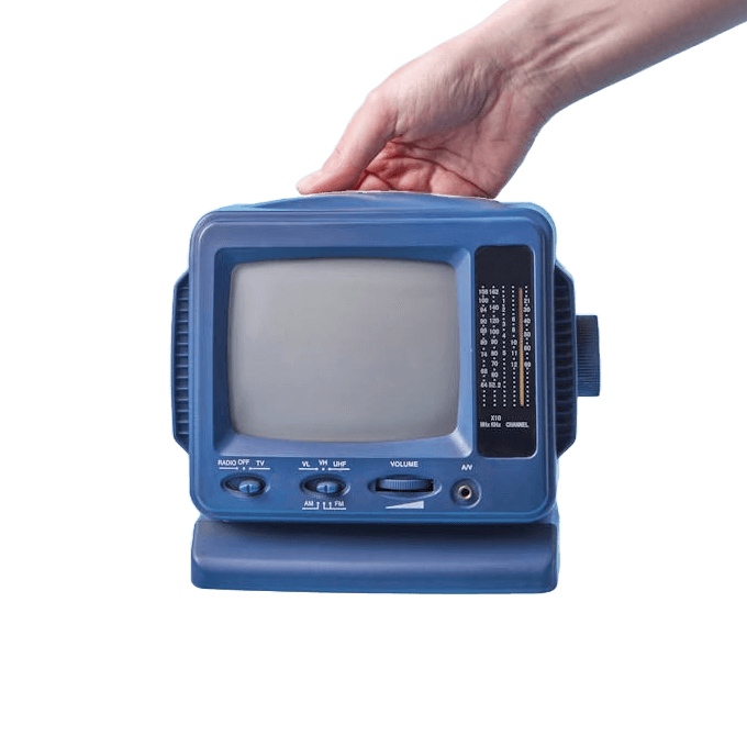 In this example, we upload a transparent PNG sticker with a retro CRT TV (cathode-ray tube television) and a transparent background. The sticker isn't round, but we cut a round shape from it and add a 30-pixel thick blue border around it. As a result, we get a stylish sticker of a retro TV, which can also be used as an icon. (Source: Pexels.)