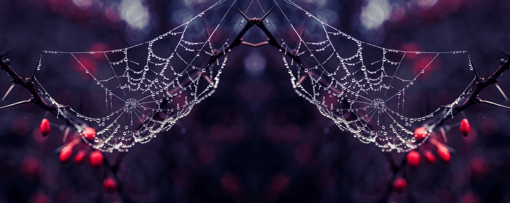 In this example, we run the vertical symmetry algorithm on a PNG image of a spider web and get two full-size spider webs in the output. The y-axis is set to the left side of the input PNG and all the pixels on the right are duplicated to the symmetrical image. This operation creates an output PNG that is twice as wide as the original image. (Source: Pexels.)