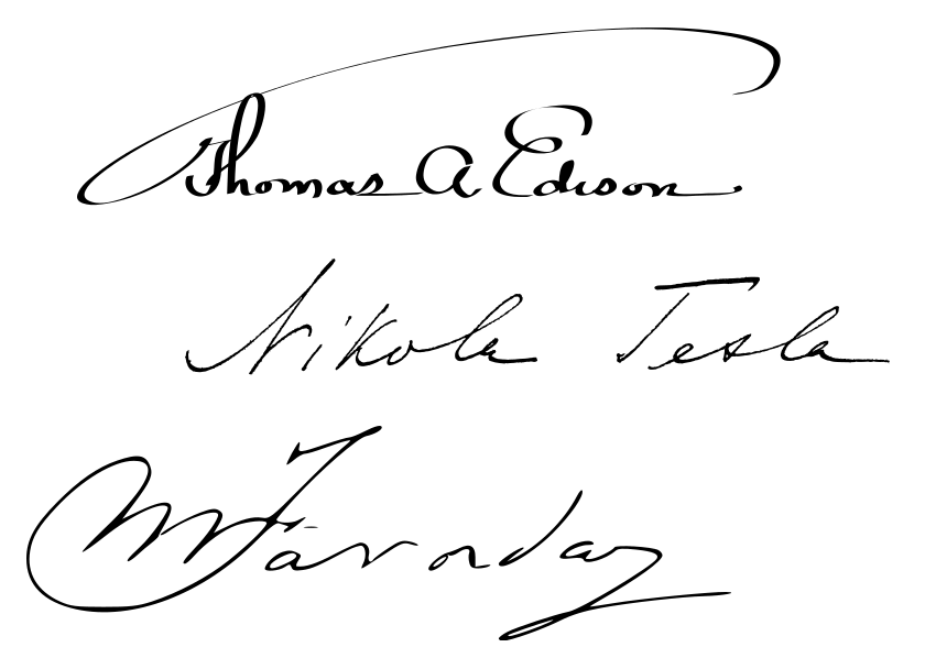 In this example, we load a scanned sheet of paper with the signatures of three outstanding visionaries – Thomas Edison, Nikola Tesla, and Michael Faraday. To cut out just Nikola Tesla's signature from this document, we fine-tune the crop area using the options and specify the exact cut position and dimensions. Once this operation completes, the output contains only the signature of Nikola Tesla and all other signatures are dropped. (Source: Wikipedia.)