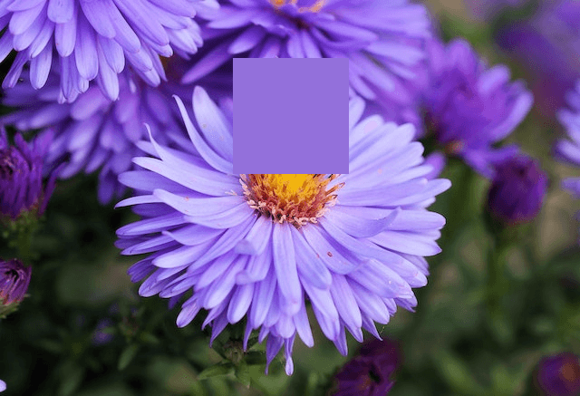 This example removes a bee that had landed on a flower to collect pollen. We simply overlay a 128×128px square area over the bee and fill it with a mild medium-purple petal color. (Source: Pexels.)
