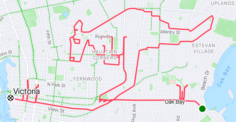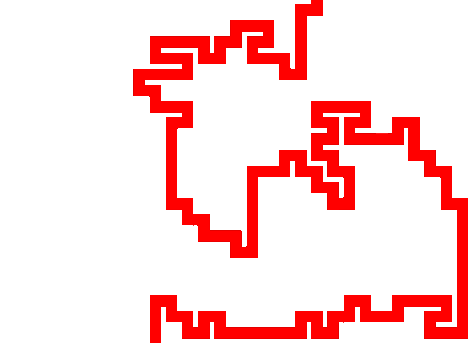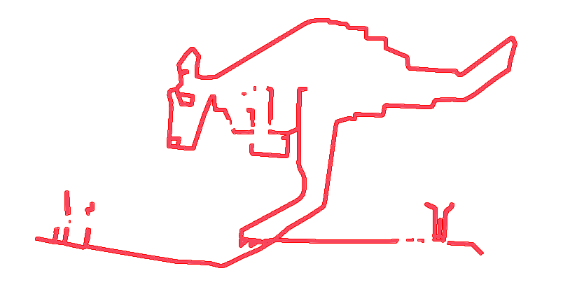 In this example, we extract the route that a Strava runner took on his daily run. He used a GPS tracker to record his running path and it turned out to be a drawing of a kangaroo in the city of Victoria in Canada. Such drawings are also often called GPS art and a person who does such art is called a human etch-a-sketch. To make the kangaroo drawing a little bit clearer, we also add a 1-pixel red line along the edges of the extracted pixels. (Source: Strava.)