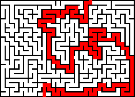 In this example, we extract the correct solution for a maze. We enter the color "red" in the color extraction option and get a line that connects the start entrance and the exit point of the maze. (Source: Wikipedia.)