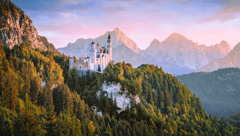 In this example, we load a photo of a mountain-top castle surrounded by a forest and extract its color palette with the colors sorted from the darkest color to the lightest color. We find the ten most popular tones and draw them on the screen together with their hex codes. (Source: Pexels.)