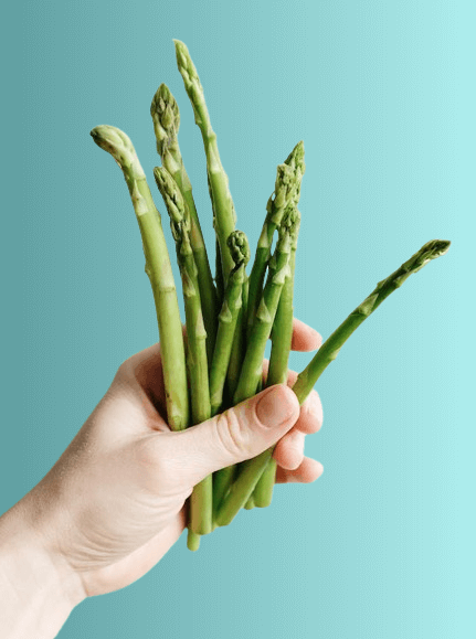 In this example, we apply a linear gradient fill to the alpha pixels of a PNG of a hand holding asparagus. We eliminate the transparent pixels around the asparagus, creating a smooth color transition from pale-turquoise on the left to azure on the right side of the PNG. This operation overwrites the alpha channel information and the output PNG is fully opaque. (Source: Pexels.)
