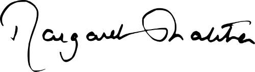 This example fills the alpha channel in a PNG image of Margaret Thatcher's signature with white color, converting its transparent background into a uniform white background. The transformation creates a fully opaque signature, which is ideal for adding the signature to paper documents when printing or importing it in applications that don't support transparency. (Source: Wikipedia.)