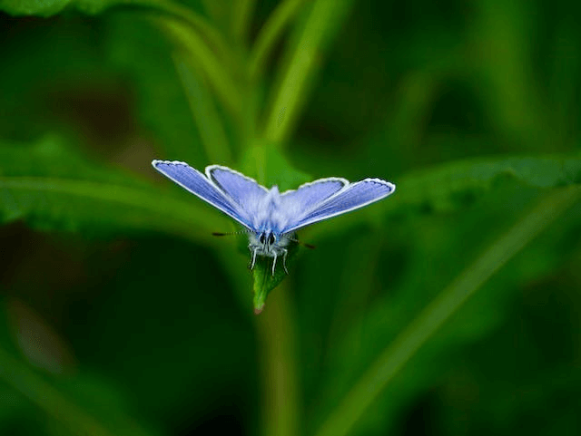In this example, we upload an average-sized PNG image of a purple moth on a green leaf. The tool instantly displays an accurate file size, which is 80,657 bytes. Additionally, it prints the same size in kilobytes – 78.77kb. This is an optimal size for a well-compressed PNG image with dimensions of 640 pixels by 481 pixels. The pixel density information of 3.82 pixels per byte confirms that it's well-compressed. (Source: Pexels.)