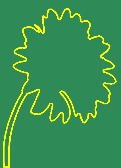 This example demonstrates how to find the outline of a PNG image with heavily anti-aliased edges. The yellow petals gradually fade into transparency, so to correctly detect the object's boundary, we set the alpha threshold to 0.9. This means pixels more than 10% transparent are treated as background, while nearly opaque pixels are outlined. We generate a balanced, centered outline and enable the "Outline Only Outer Contour" option to avoid tracing gaps between the petals. The outline is crisp, without smoothing. (Source: Pexels.)