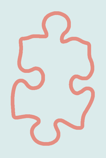 In this example, we generate an outline around a single puzzle piece in PNG. We draw the outline exclusively on the outer side, which makes the resulting mask slightly larger than the original piece. We set a wide outline thickness of 15 pixels and choose colors that match the image’s tone: a soft background of rgb(219, 235, 235) and a coral outline of rgb(229, 141, 129). (Source: Pexels.)
