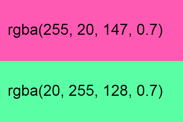 In this example, we explore complementary colors with transparency. We set deep pink (represented as rgba(255, 20, 147, 0.7)) as our base color, which is made 30% transparent by setting the opacity to 70% (0.7). The tool then calculates its contrasting color, spring green, which also inherits the 30% transparency (keeps 70% opacity). We display the colors in RGBA format to clearly show their alpha channel values and download them as a standalone color palette.